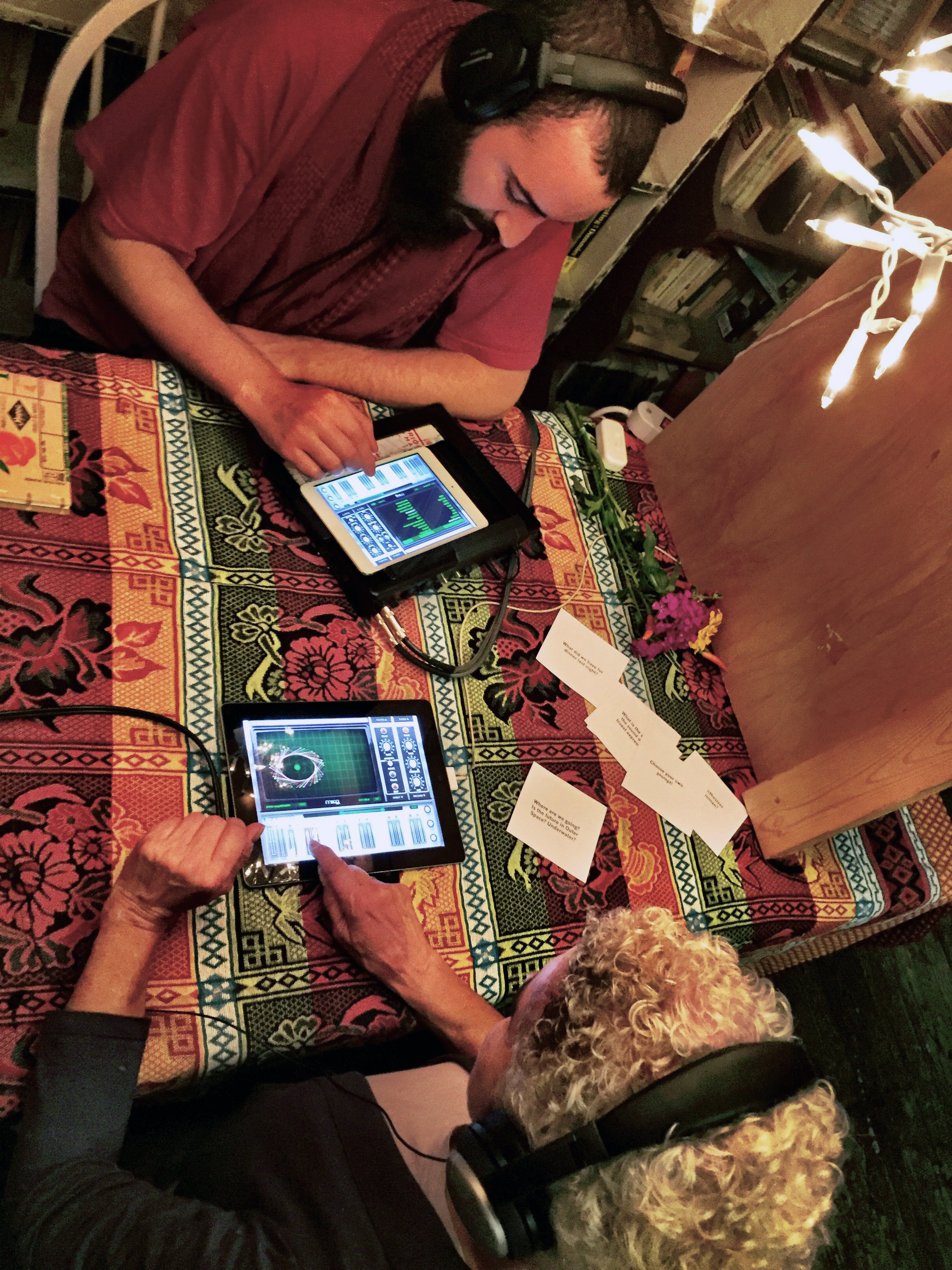 If you had joined me in The Empathy Chamber on one of those nights in 2016, our improvisation might have gone any number of ways. We might have played for only a moment, just long enough for you to get a feeling for the novelty of the Animoog iOS software synthesizer. More likely, we’d have sat there for a few minutes exchanging gestures in sound, admiring the small flickers of choice here and there altering the course of our duet. Listening back to the recordings below, I now hear little moments of decision, signposts of discovery. Above all, we were investigating ways of listening to listening and playing about playing. Awkward semi-steps and pauses, moments of talking over, stuck notes, and other anxious soundings laid a groundwork for exchange on the theme of empathy.