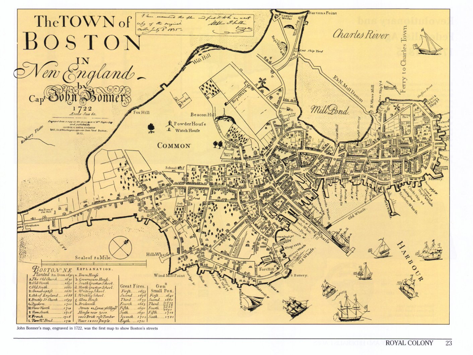 The cover image is the 1722 Bonner map of Boston, courtesy of: Norman B. Leventhal Map & Education Center at the Boston Public Library.
