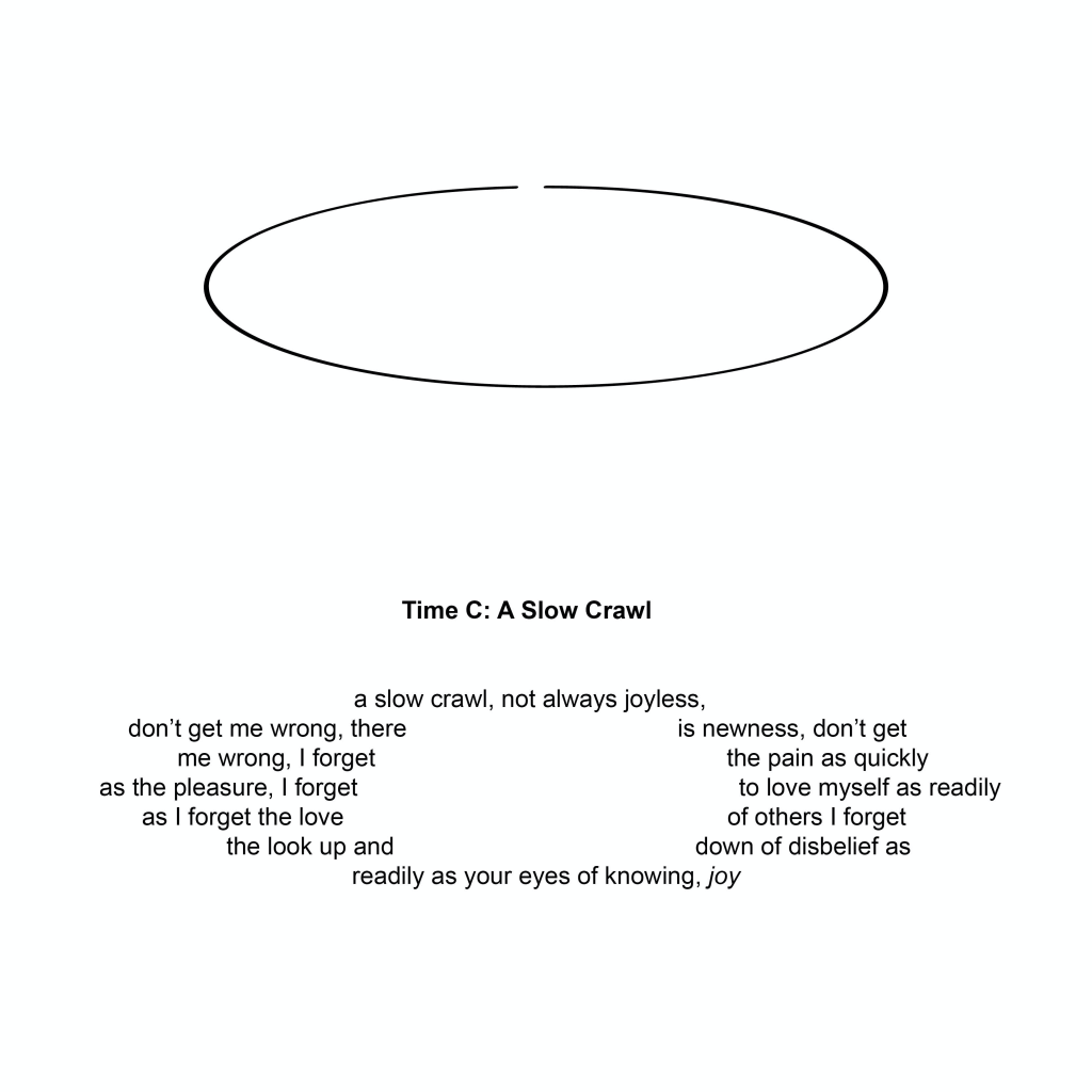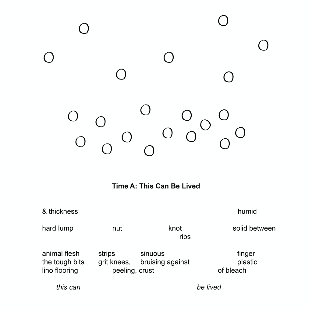 We wanted to resist the concept of the narrative arc, of time as a linear progression from dependent child to independent reproductive adult, and its associated life stages. We wanted to articulate the blurring of past, present, and future that illness provokes; the periods of remission and relapse, the infinite present that pain and discomfort necessitate, and the multiple selves that reside in fractured pasts and imagined futures. Through diagrams, poetry, and critical dialogue, we attempted to ‘redraw’ the shape of time in illness, in order to convey the stasis, disruption, chaos, and fragmentation that are so central to the experience of being sick.