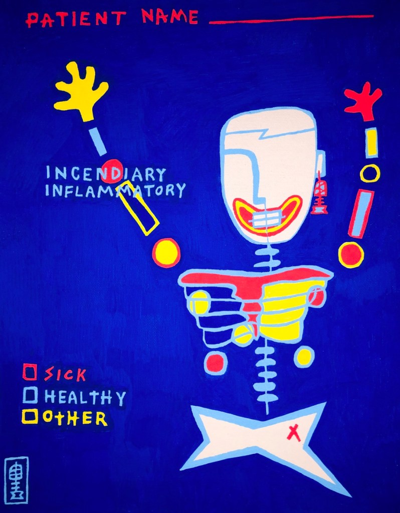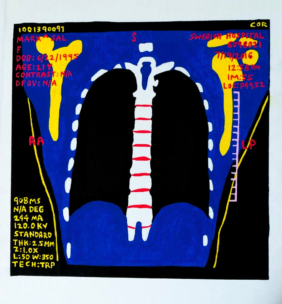 Artist bio: Marx is a multimedia artist who works to illuminate patient experiences with chronic disease and disrupt the medical industrial complex. Living with Ankylosing Spondylitis, an invisible, underrepresented disease, they hope to use storytelling to empower patients and promote health justice and equity in the biomedical sphere. Marx is a graduate student in the Narrative Medicine program at Columbia University. salmarx.myportfolio.com