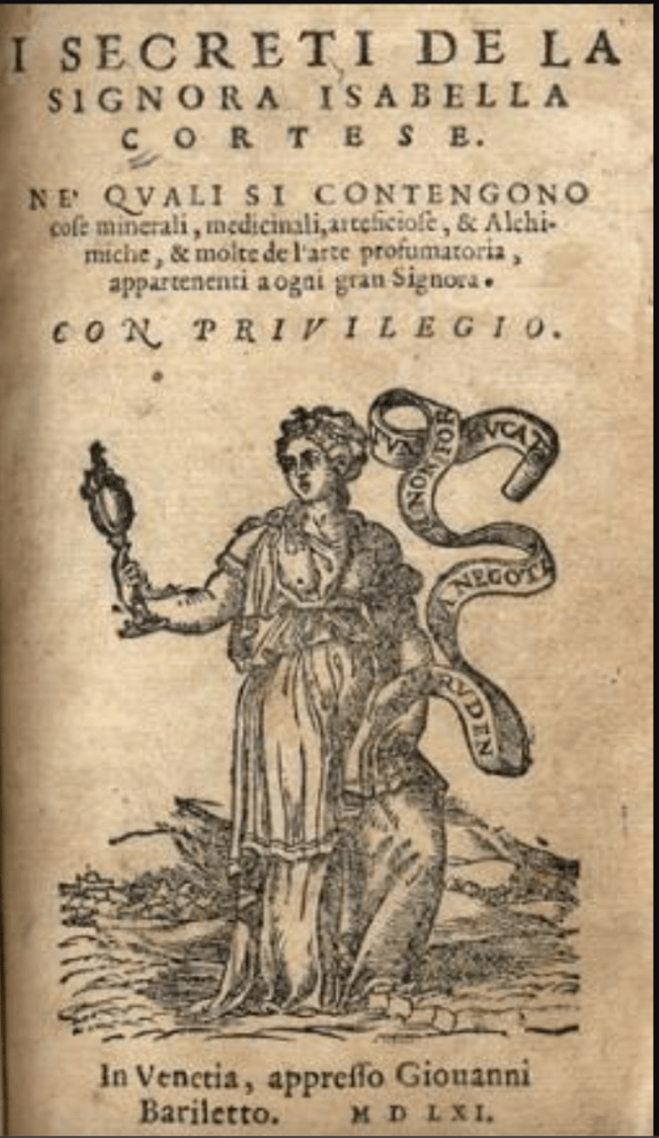 In the past as now, the language of ‘secrets’ has pervaded beauty culture. Vogue’s somewhat oxymoronic YouTube playlist of ‘Beauty Secrets’ is only one example of the term’s idiosyncratic connotation. Beauty secrets are evidently not intended to be “kept from public knowledge” (OED, “Secret”). Rather, the secretive language around cosmetic culture strikes closer to the meaning conveyed by the title of the early modern recipe book I Secreti De La Signora Isabella Cortese, or The Secrets of the Lady Isabella Cortese (Ray, 46). ‘Secrets’ referred to insights gleamed from a trial-and-error process of home experimentation. Nature, not people, kept a ‘secret’ of the virtues of its herbs and stones, which were found out and disseminated through the efforts of domestic alchemists like Isabella.