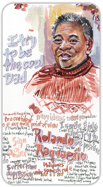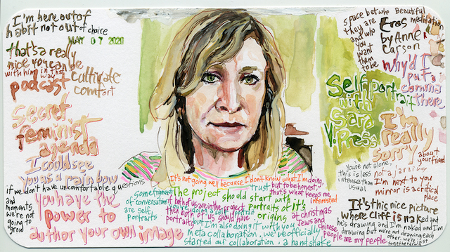 Wheatley and I met at a Health Humanities Conference in Chicago in March of 2019. Approaching the conference sign-up table, I was distracted by a large poster with bright watercolor portraits surrounded by words. A television positioned beside the poster showed an exuberant artist painting and listening attentively to her sitter. That artist was Charmaine Wheatley, and she happened to be standing right beside the image of herself on screen. We immediately fell into conversation and have stayed in touch since.