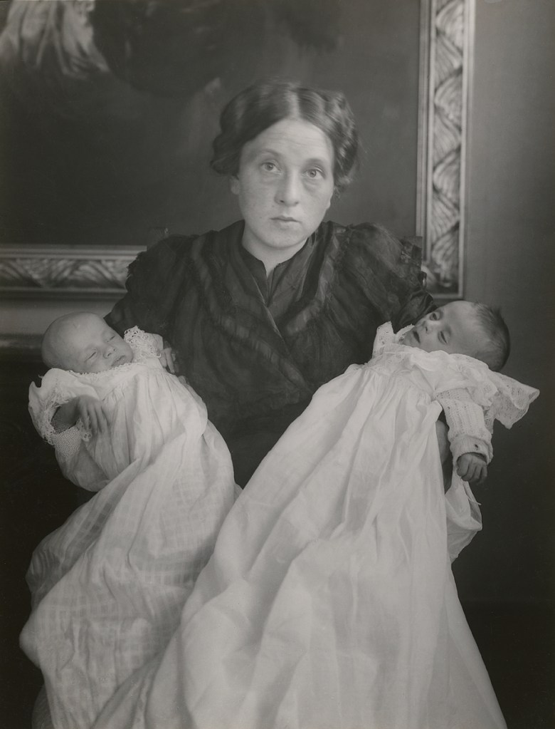 This photograph (Fig.1) was taken by the preeminent German photographer August Sander of his wife, Anna, holding their newborn twins. One of them would live only a few hours beyond the taking of the photograph. Elsewhere, Sander documented with precision what he termed his “types” in his project “People of the 20th Century.” Here, he fixes his lens on this all-too-brief family. The title, “My Wife in Joy and Sorrow,” makes me wonder if one twin was named Joy and the other Sorrow. They call to mind the Gemini twins, Pollux and Castor, bookends of the emotional spectrum. They will no longer be “parallel,” neither in the skies nor in their mother’s arms. They are, in fact, Helmut and Sigrid. It isn’t the twins though who arrest my gaze. It is Anna’s. Her face, for me, registers neither Joy nor Sorrow.