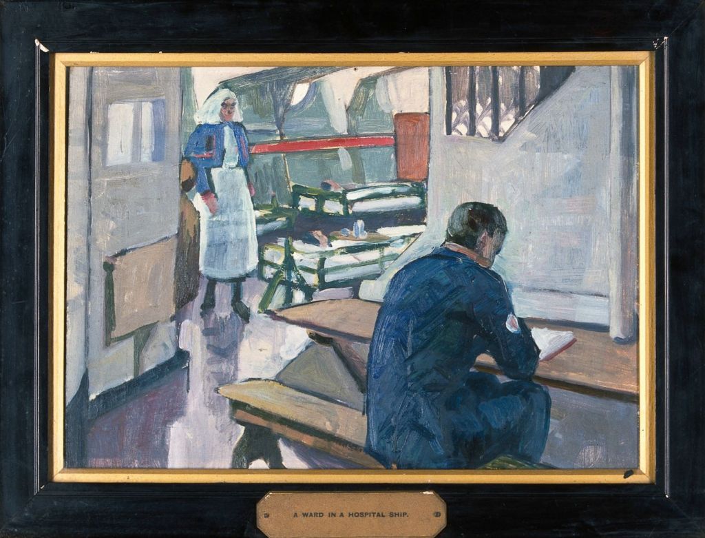 Image Credit: World War I: a ward in a hospital ship. Oil painting by Godfrey Jervis Gordon (“Jan Gordon”), 1917. Wellcome Collection. Public Domain Mark. Source: Wellcome Collection. https://wellcomecollection.org/works/g25dbs6c