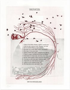 One of the adventures in this project was to consider new alchemies for how text and image interact with one another, contributing to syntax and lyrical “heat” by way of bringing disparate elements together. I hope that the gaps or spaces between the elements are where readers can connect to the work with their own experiences. It is important to me that the elements do not echo one another but offer space for inquiry to occur in between.