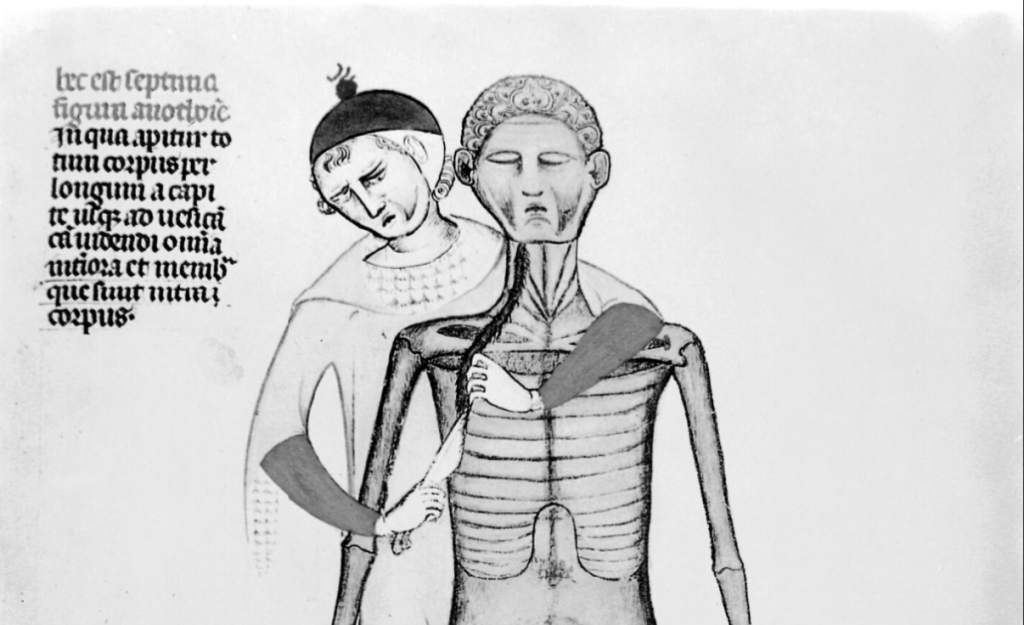 Credit: Guido de Vigevano, miniature anatomical figures, 1345. Wellcome Collection. Source: Wellcome Collection.