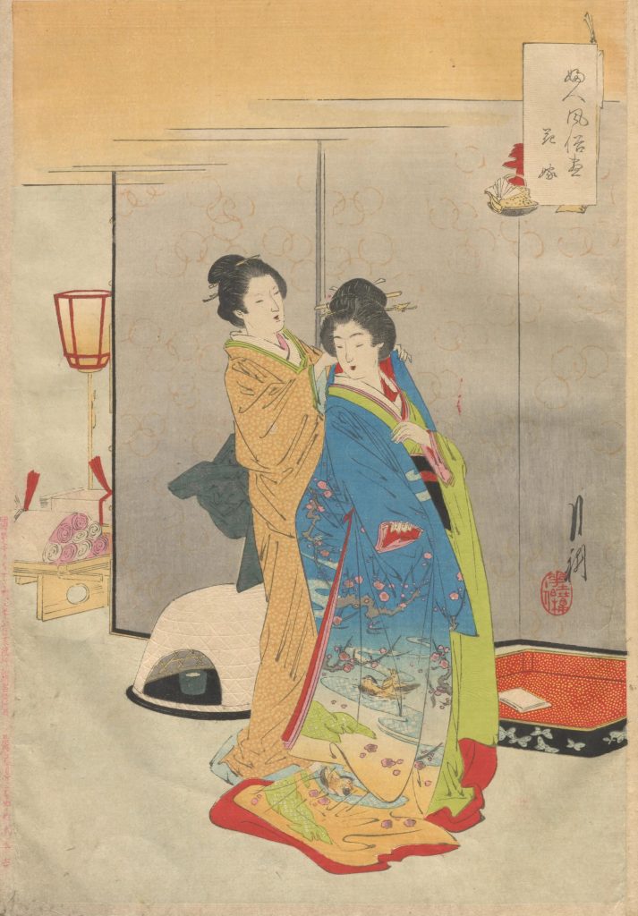 Ogata Gekkō 尾形月耕. “Hanayome 花嫁 [Bride].” In Fujin fūzokuzukushi . Tokyo: Matsumoto Heikichi. 1898. https://dl.ndl.go.jp/pid/12150788/1/41.